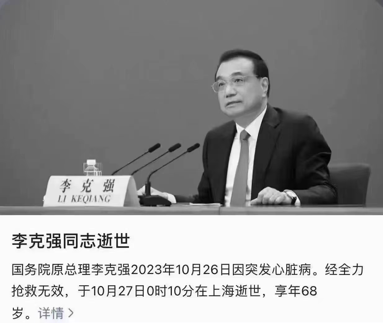 沉痛悼念人民的好总理克强同志 心系民生,殚精竭力,生前对...